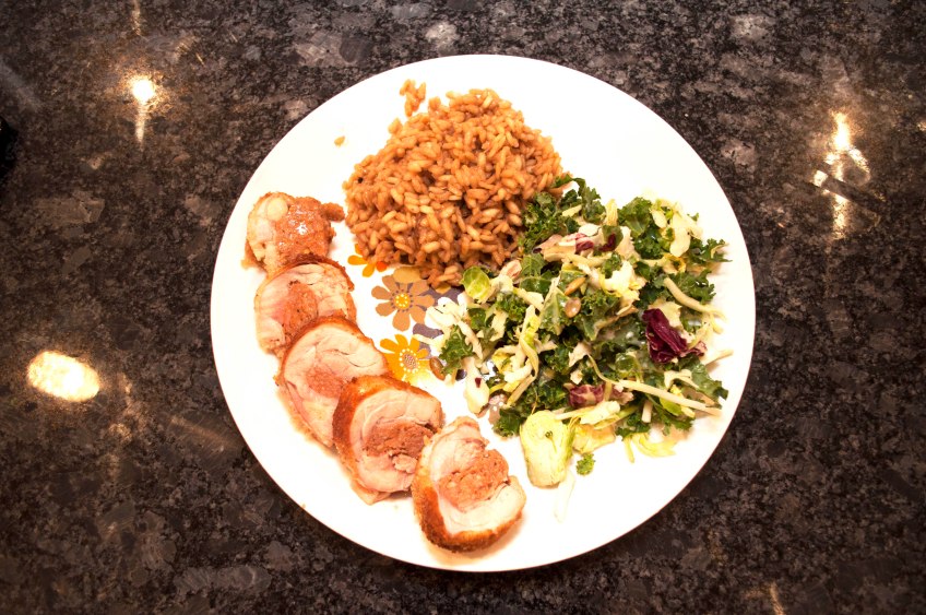 wm risoto chick_125 Published January 15, 2016 at 4288 × 2848 in Italian Sausage Stuffed Chicken with Wild Mushroom Risotto