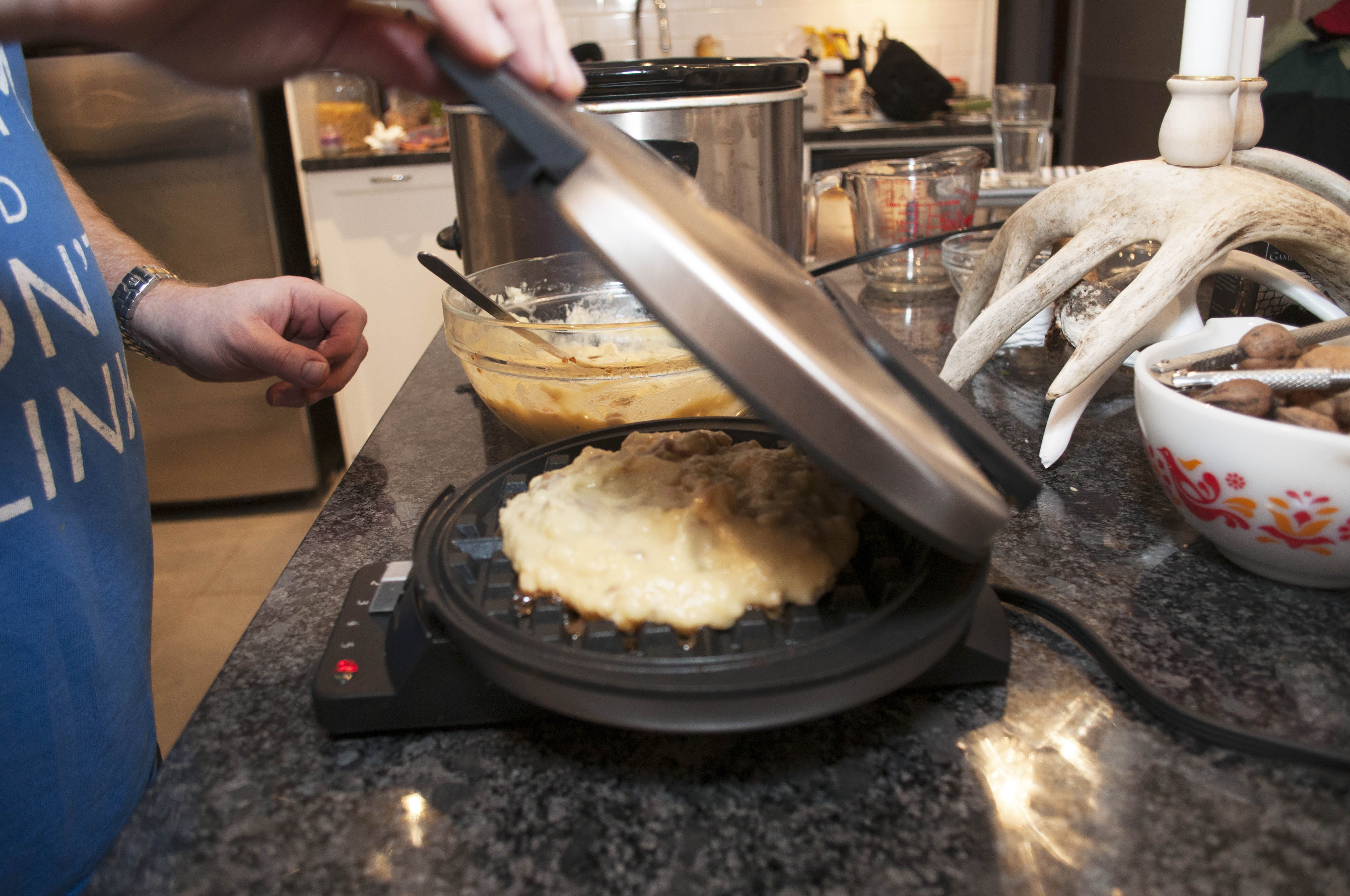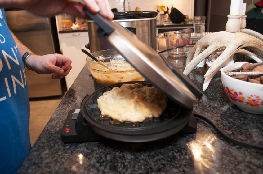 Slow-Cooker Pulled Pork & Potato Waffles