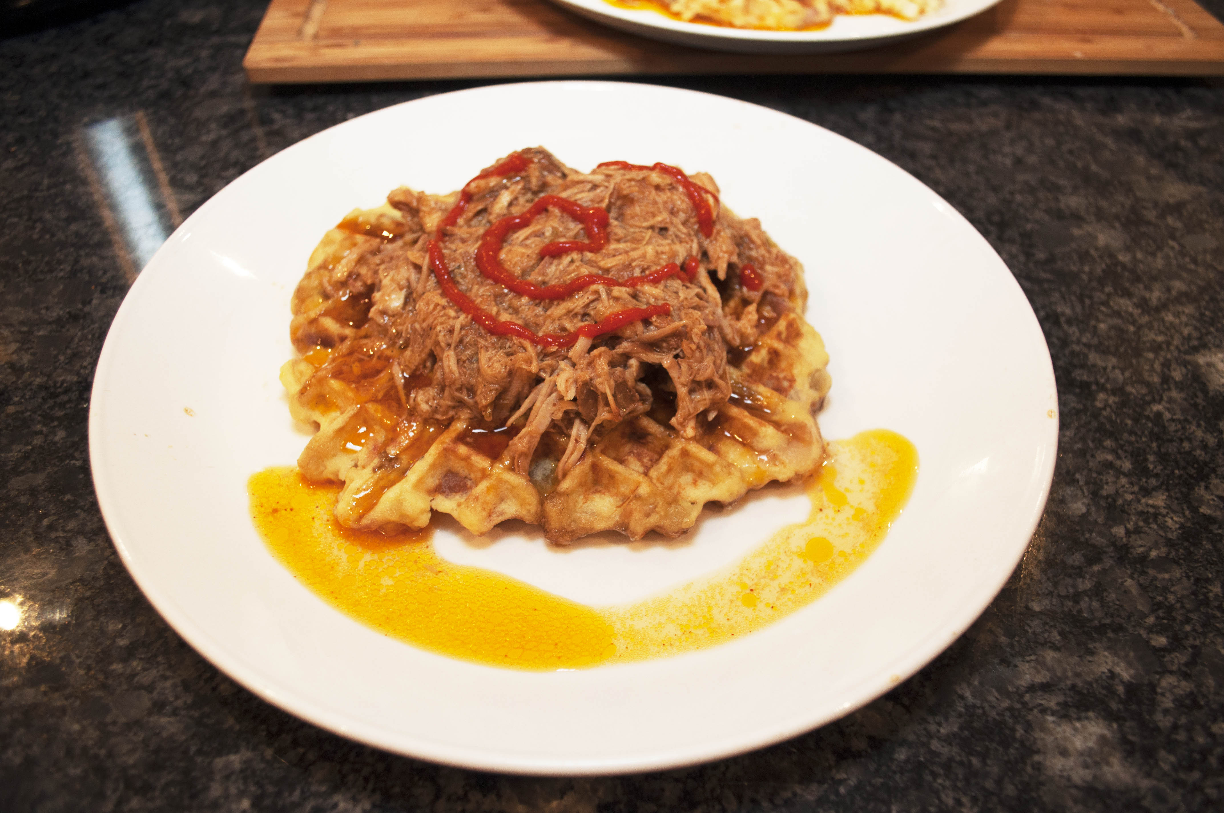 Slow-Cooker Pulled Pork & Potato Waffles